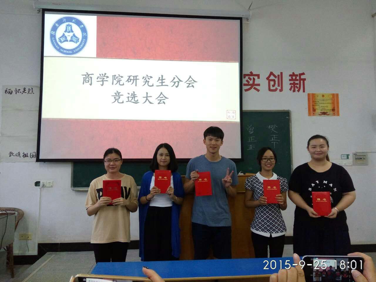 为了加强商学院研究生学生分会的工作建设,2015年9月25日,商学院全体研究生(包括海外留学生)于二教302举行了第八届商学院研究生分会竞选大会,竞选大会由分会主席张恒同学主持。