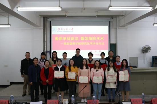 2019年11月24,由赣南师范大学研究生院主办、商学院承办的第四届研究生学术年会暨商学院学术分论坛活动在二教508举行。本次学术论坛活动以“聚焦学科前沿,繁荣商院学术”为主题,旨在加快学院学科建设,聚焦学院学科发展前沿,提升专业硕士学位的人才培养质量。商学院副院长边俊杰及部分硕士生导师参加了本次活动。