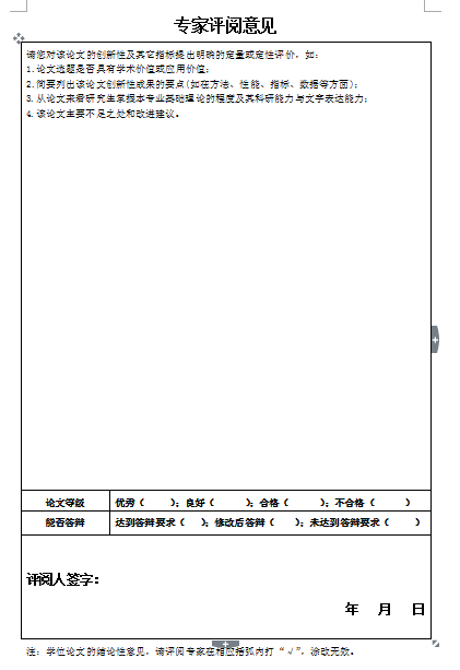 (三)评阅形式:本次论文评阅分校内评阅和校外评阅两种。具体如下: